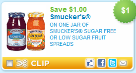 Use the zip code 90210 and you can print a $1/1 Smuckers Sugar Free or Low Sugar Fruit Spreads! You don’t see jam coupons often, I definitely recommend printing NOW!