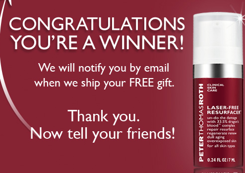 Hurry over to the Peter Roth Facebook Page for your chance at a FREE Peter Roth Laser Free Resurfacer!! I just won one — they are giving away 20k! Let us know if you get one too!