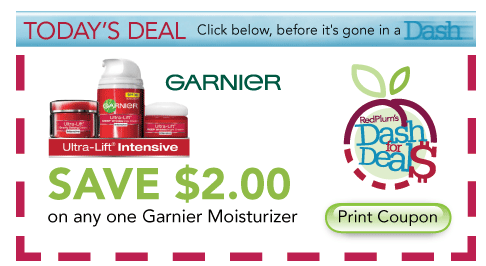 Red Plum has started a new thing on their website, called the “Dash for Deals”. Today’s offer is a coupon for $2 off any one Garnier Moisturizer.