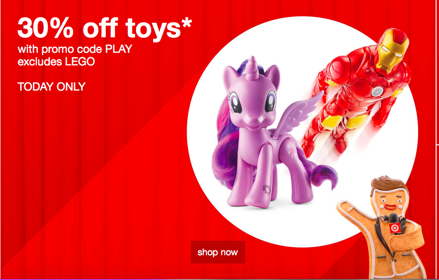 Head over to Target.com where TODAY ONLY they are offering up 30% off all toys when you enter promo code PLAY at checkout!!