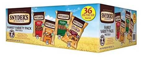 Hurry over to Amazon, where they are offering up this 36 count Snyder of Hanover Pretzel Variety Pack for just $6.93 shipped when you do subscribe and save!
