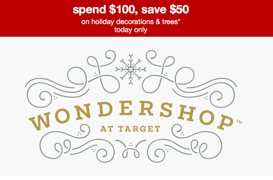 Head into your local Target store or over to Target.com where today only they are offering up 50% off a $100 Wondershop coupon!!