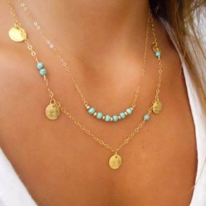Gold & Turquoise Layered Necklace only $3.70 + FREE Shipping!