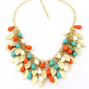 Gold Leaf Statement Necklace only $5.08 Shipped! Great Fall Colors!