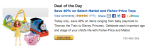 Amazon Daily Deal: 40% off Select Mattel and Fisher-Price Toys!!