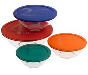 Pyrex Smart Essentials 8-Piece Mixing Bowl Set W/Colored Lids just $13.49!! Reg. $24.99!