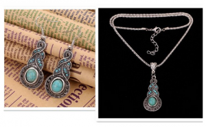 Silver Turquoise Crystal Butterfly Heart Necklace Earrings Set just $4.20 + FREE shipping!!