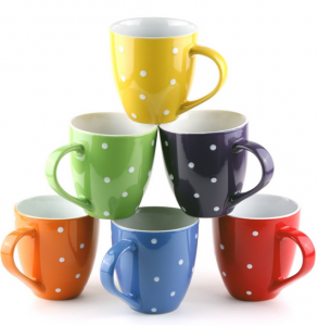 Set of 6 Large-sized 16 Ounce Ceramic Coffee Mugs (Polka Dot) for just $14.98!! Reg. $59.95