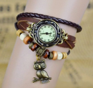 Women’s Owl Pendant Cute Weave Leather Belt Bracelet Watch just $5.39 + FREE Shipping