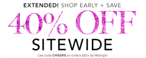 Right now when you shop at e.l.f Cosmetics all orders of $20 or more you will get 40% off and purchase of $20 or more!!! That goes great with their $1 makeups! Just use coupon code CHEERS at checkout! What is even better is that they have a TON of cosmetic items like eye shadow, lipstick, lip gloss, mascara … [Read more...]