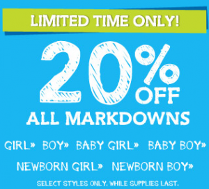 Extra 20% Off Markdowns at Crazy 8!! Jeans, Tees and more Starting at just $3.99!!