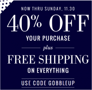 Here is another great Black Friday sale that is available ONLINE now!!! American Eagle is offering up a whopping 40% off everything sitewide!! Plus FREE shipping!! Just use the promo code GOBBLEUP at checkout! This works on clearance too!! Head over to AE.com! … [Read more...]