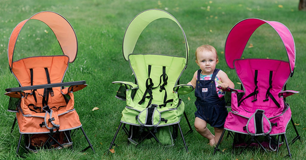 These portable kids chairs include a carry bag, removable tray, removable sun canopy, and removable harness. Each chair is designed to provide shade for your little one to keep them safe and comfortable both indoors and out.