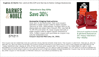 Barnes and Noble just released a number of coupons that are good through Valentine’s Day. Notably, there is one that is 30% off anything on their “Happy Valentine’s Day” Display in store!