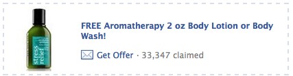 Here is a great freebie for you! Head over to the Bath & Body Works Facebook Page and “claim” their offer for a FREE Aromatherapy Body Lotion or Wash! This is for the 2oz trial size!
