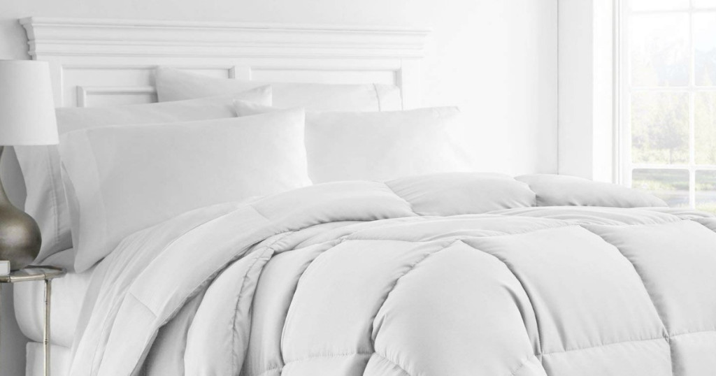 This alternative goose down comforter can be used as a duvet insert or a stand-alone comforter. It’s hypoallergenic to provide a barrier to protect against dust mites, mold, allergens, and mildew, plus it’s machine washable.