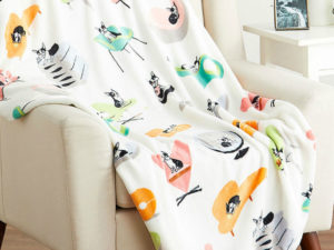 *This 50″ x 60″ throw features cute dogs on cool furniture pieces