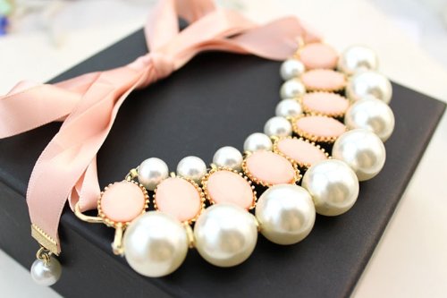 Material: Alloy.Pearl.Ribbon; Chain Length:90CM/35.4″(Adjustable)