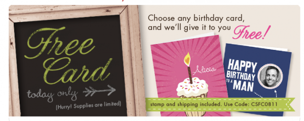 Cardstore.com is offering a FREE Birthday Card today!! You even get to personalize it!