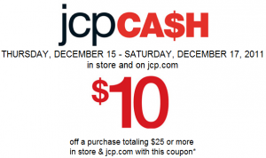 JC Penney: $10 off a $25 Purchase Coupon! (12/15-12/17)