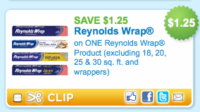 Sweet! Here is a HIGH value coupon for Reynold's Wrap! Take $1.25 off any one Reynolds Wrap Product, excluding 18-30ft and wrappers. The larger rolls can be found as low as $3 on sale so this is definitely a coupon you'll want to print and have handy! … [Read more...]