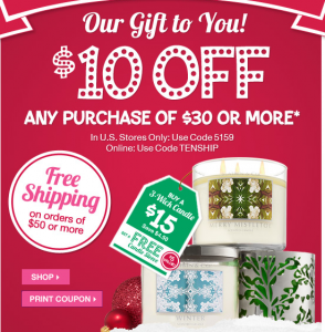 Bath & Body Works: $10 off a $30 Purchase Coupon