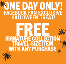 Sweet!! Here is another great offer from Bath & Body Works! They just posted the following on their Facebook Page: “Happy Halloween! TODAY only, we’re giving all of our Facebook Fans an exclusive HALLOWEEN TREAT — FREE Signature Collection Travel-Size Item with any purchase! Print the offer here or show this post on your phone to redeem. … [Read more...]