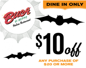Buca Di Beppo: $10 off a $20 Tab Coupon (expires 10/31)