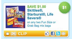 HOT Coupon Alert: $1/2 Skittles, Starburst or Lifesaver Fun Size or Grab Bags Coupon