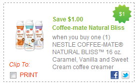 Mmmm, I love the Caramel coffeemate --- have you tried their new Coffee-mate Natural Bliss yet? Here is a $1 off coupon for you! Will make for a great deal at Walmart with this one! (Thanks, Coupon Mamacita!) … [Read more...]