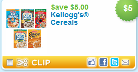 Super HOT Coupon Alert!! $5/5 Kelloggs Cereal!!
