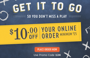 Woot!! Here is a great way to save some money on appetizers for tomorrow's big game!! Get $10 off your online order of $25+ at Macaroni Grill! Just use the promo code 124 at checkout! $25 minimum order before taxes & gratuity required. Promo Code must be entered online at checkout to receive discount. Valid on online To Go and … [Read more...]