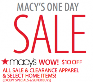 HOT Coupon Alert: $10 of a $25 Purchase at Macy’s! 9/7 + 9/8 until 1pm