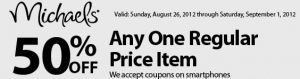 Michaels: 50% off any ONE Item Coupon!!