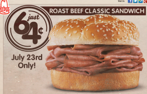 Arby’s: $.64 Roast Beef Sandwich! Today only!