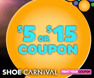 HOT Coupon Alert! $5 or $15 off your Shoe Carnival Purchase!