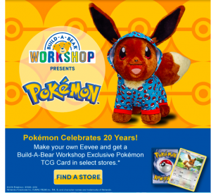 How CUTE!!!! Head into your local Build a Bear where they have released the NEW Pokemon Build a BEAR.....EEVEE!!! When you head into your local build a bear and build your very own Eevee you will get a FREE Exclusive Pokemon TCG Card!!! … [Read more...]