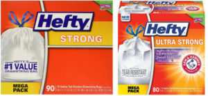 Hefty 13-Gallon Tall Kitchen Drawstring Trash Bags 90 Count $9.59 Shipped