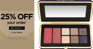 Now through November 25, Tarte Cosmetics is offering up an additional 25% off site wide, including Sale items, when you use promo code FRIYAY at checkout! And you’ll be able to choose a FREE concealer or eyeshadow brush at checkout (automatically applied). Keep in mind that shipping is free on $25 orders after all discounts are applied. … [Read more...]