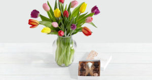 15 Multi-Colored Tulips, Vase, & Chocolates $23.97 Delivered TODAY ONLY