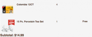 *HOT* 48 K-Cups (or 4 Boxes of Coffee) + 15 Piece Porcelain Tea Set just $14.99 Shipped!!! ($.31 KCups + FREE tea set!!)