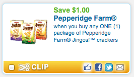 Hurry over to coupons.com and you can print this coupon for $1 off any ONE package of Pepperidge Farms Jingos crackers! There is NO size limit on this one and Target has the single serve packages for just $1 in their dollar spot = FREE after the coupon! Print a couple here now! … [Read more...]