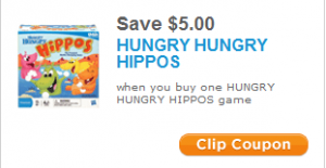 Nice!!! Head on over to the Hasbro website, you can print this $5 off one Hungry Hungry Hippos game! This means you can snag the travel size game at Target for FREE as it is priced at just $4.99! I got a couple of these a year ago when this deal was available and they are awesome to have on hand for a last minute gift -- the kids LOVED … [Read more...]