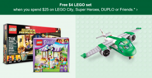 Head over to Target where this week only, when you spend $25 on LEGO City, Super Heroes, DULPO OR Friends you will score a FREE $4 LEGO Set! No coupon is needed. Shipping is free on orders of $25 or more. Plus if your a Target REDCard holder you will save an additional 5% off your entire purchase plus free shipping, if you don’t have a Target … [Read more...]