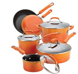 HOT!! Rachael Ray 10-Piece Porcelain Enamel Non-Stick Cookware Set in Orange just $28.97!! Reg. $130!!