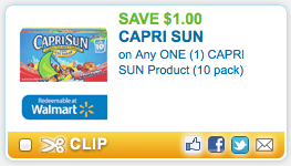 All kinds of HOT new coupons for you today! Coupons.com also just released this rare coupon for $1 off any ONE box of Capri Sun (10 pack)!! Again, this is a RARE coupon, you will definitely want to print NOW. Walmart has these at just $1.78 (varies by region) = $.78 after coupon!! Capri Sun 10 pack, $1.78 Use the $1/1 coupon … [Read more...]