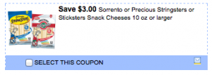 Yum! My kids love string cheese (well, at least my son does!), it isn't cheap most of the time though! Here is a HOT and rare coupon that you will want to print NOW! Right now on SmartSource you can print a coupon for $3 off any two Sorrento or Precious Stringsters or Sticksters Snack Cheeses 10oz or larger. The 12oz Precious stringsters … [Read more...]