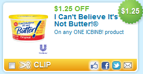 HOT Coupon Alert! $1.25/1 I Can’t Believe it’s Not Butter Coupon = $1.22 at Walmart