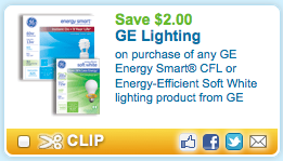 It appears this coupon is now out of prints :( If you find it -- let us know! WOW!!! I posted about this coupon earlier today but this is even better than I thought!! Hurry over to coupons.com and you can print this coupon for $2.00 off the purchase of any GE Energy Smart or Energy Efficient Lighting product. GE Soft White 3-way … [Read more...]