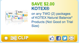 HOT Coupon Alert: $2/2 Kotex Natural Balance Products = 2 FREE Boxes at Walmart!!